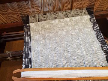 This works because you shift the position of the reed up and down as you go. On old barn looms like mine with overhead beaters this is quite simple, since most of the old looms have multiple holes for pegging the beater at different heights.